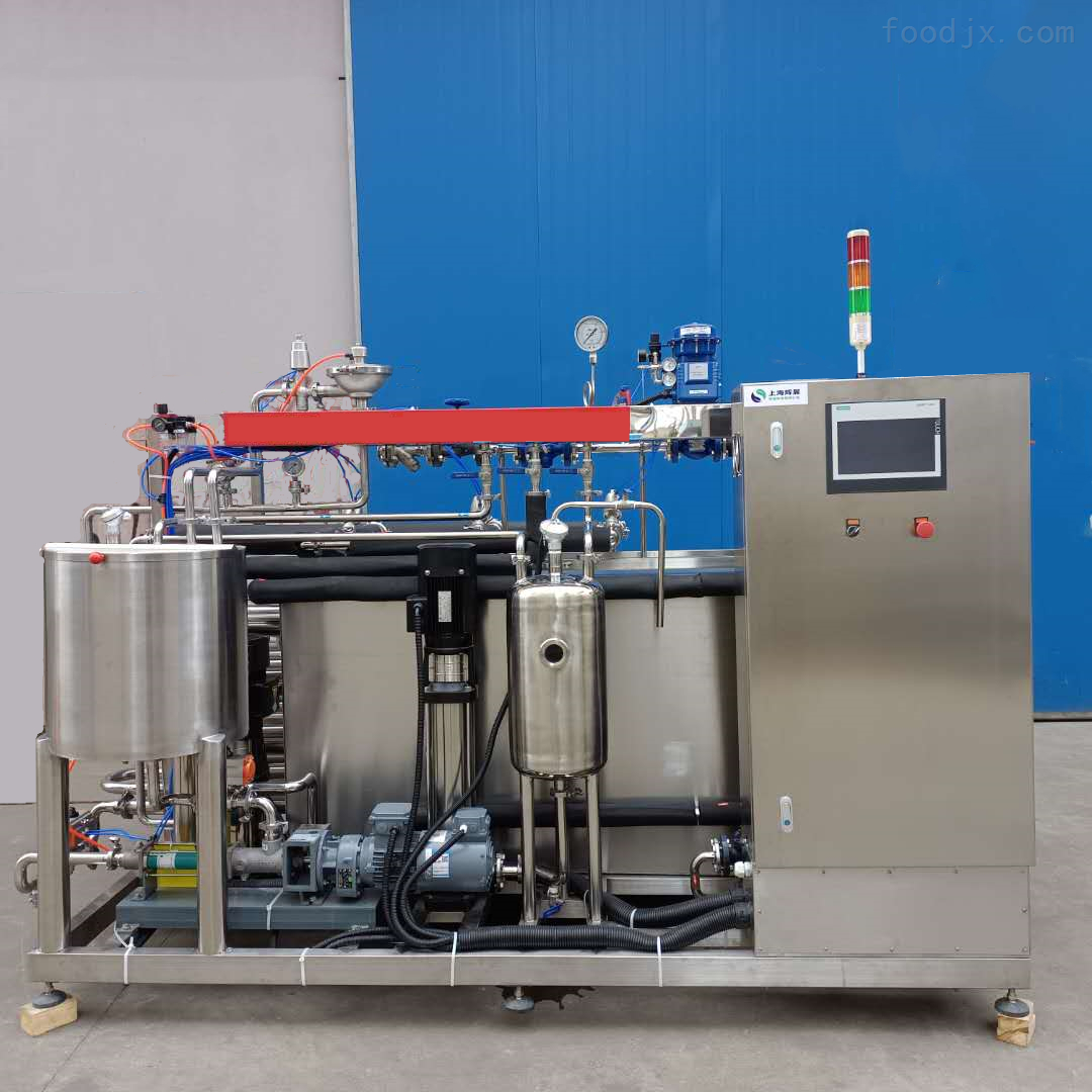 2020-09-23 500L超高溫UHT殺菌機適用于乳品、果汁、飲料等液態產品的瞬時超高溫滅菌,也能用于粘度大且含有纖維和顆粒的液體。設備用于液體奶生產時,生產流量由均質機控制,用于果汁等其他飲料生產時,生產流量由進料段的流量調節裝置自動控制。設備自帶CIP清洗系統。控制系統采用PLC和觸摸屏,配以先進的控制軟件和良好的人機界面,對生產全過程進行監控,可實現從設備消毒、生產到CIP清洗的全自動控制。